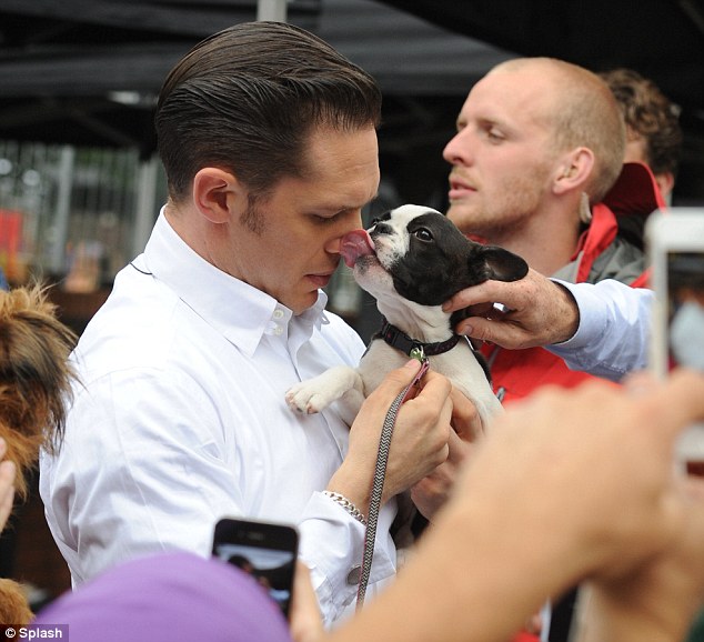 под фоткой с крошкой-собачонкой, которая облизывала его лицо, написано: "Счастливая маленькая сучка!!!!"