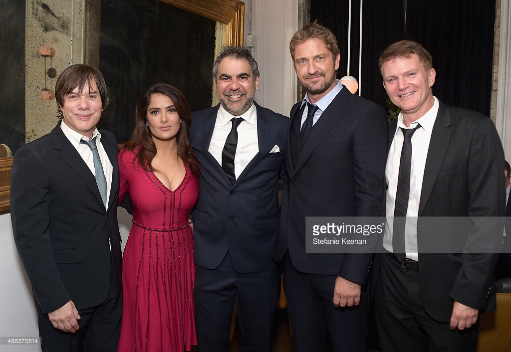 Producer Alan Siegel, actress Salma Hayek, director Wayne Blair, actor Gerard Butler and producer Les Weldon attend the Septembers of Shiraz TIFF Party Hosted By GREY GOOSE Vodka at Byblos on September 15, 2015 in Toronto, Canada.