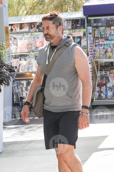 West Hollywood, CA - Gerard Butler is seen arriving at Soul Cycle. The actor gears up to sweat it out. Gerard is wearing athletic shorts and a sleeveless hoodie paired with sneakers.