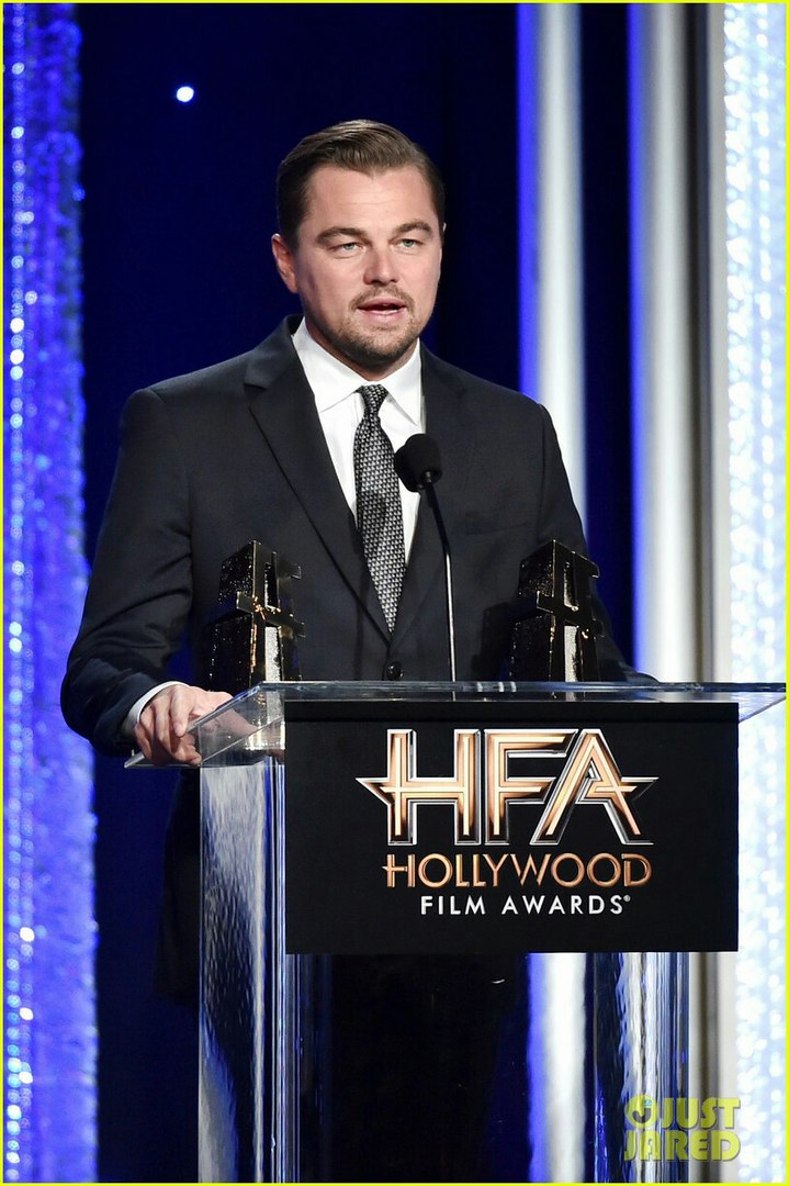 Награду вручал друг и партнер Лео по фильму "Волк с Уолл-Стрит" Джона Хилл.