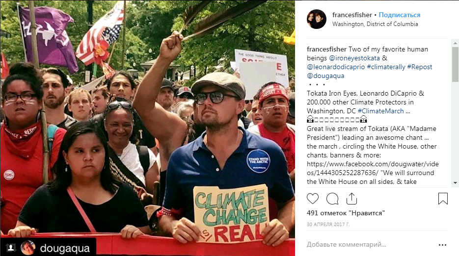 Вот что она пишет в посте в поддержку Лео во время Климатического марша в Вашингтоне в 2017 году