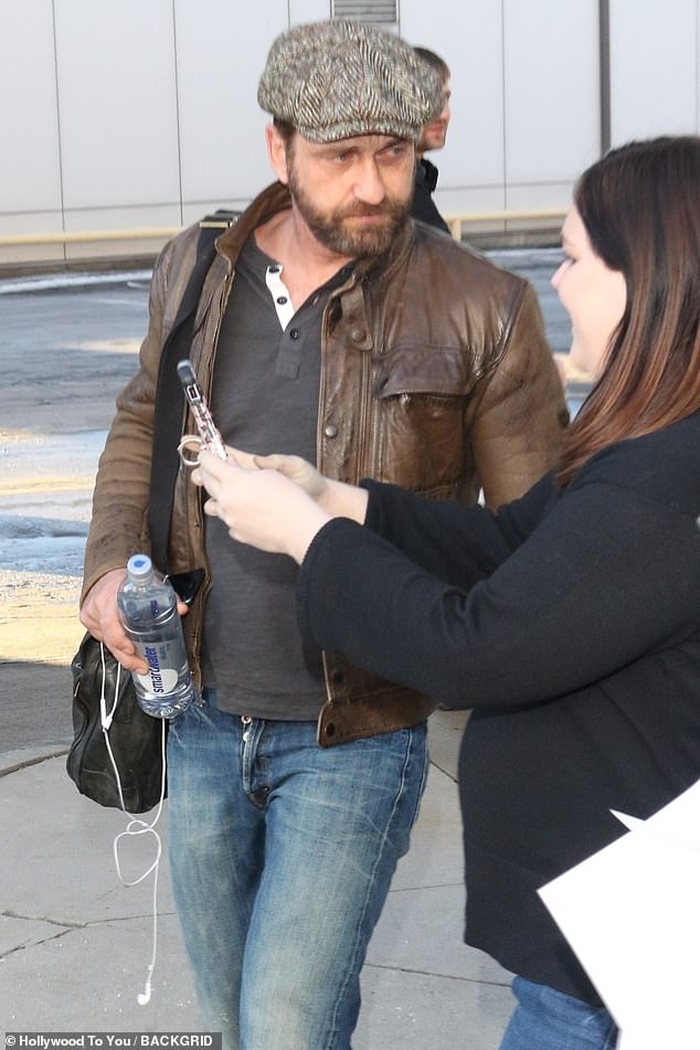 Gerard Butler is bombarded by eager fans as he touches down in Salt Lake City for Sundance Film Festival
