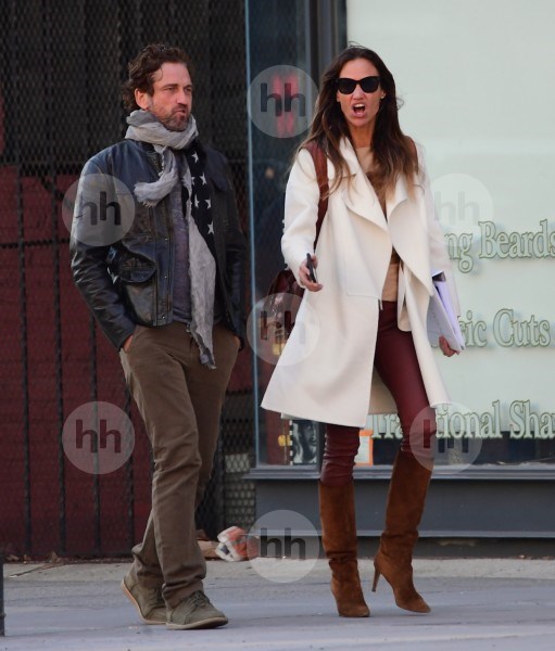 Джерар Батлер направляется на встречу на велосипеде в Нью-Йорке в понедельник днем (9 марта).