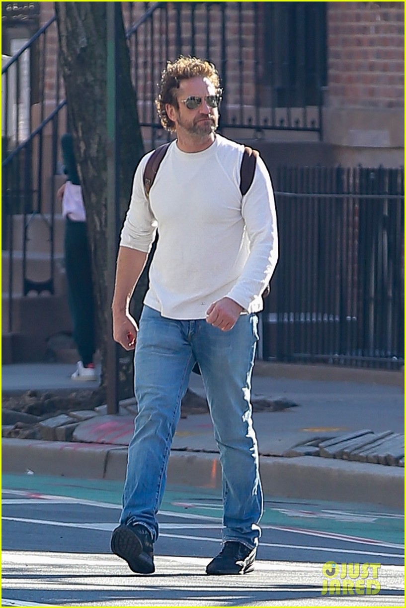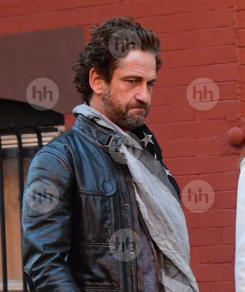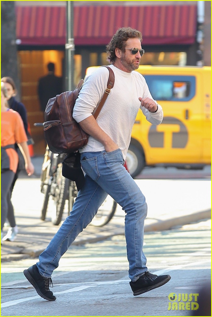 Джерар Батлер направляется на встречу на велосипеде в Нью-Йорке в понедельник днем (9 марта).