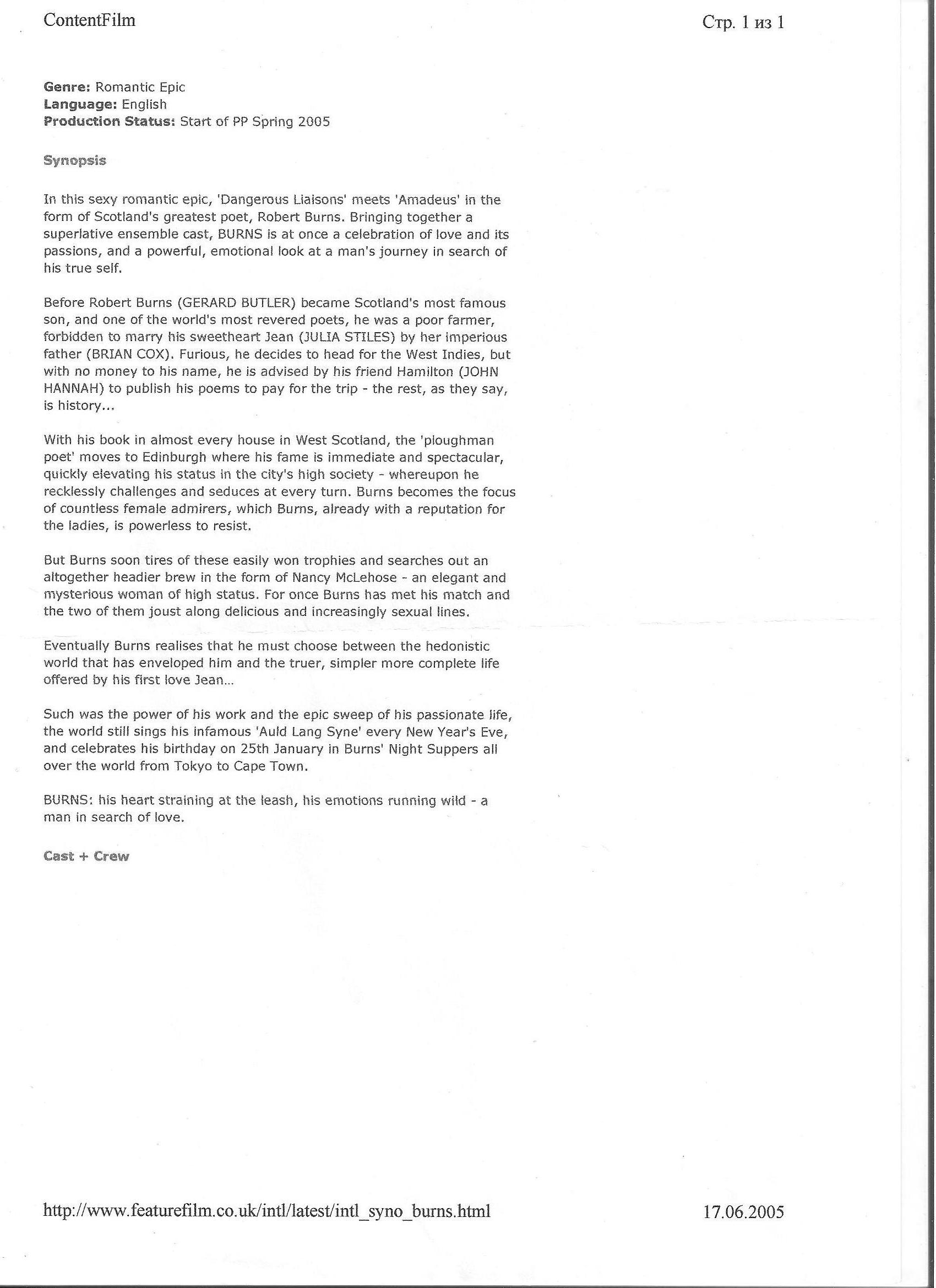http://www.youtube.com/watch?v=eoDJLb7dfaw Gerard Butler interview on Robert Burns the movie at Film Premiere