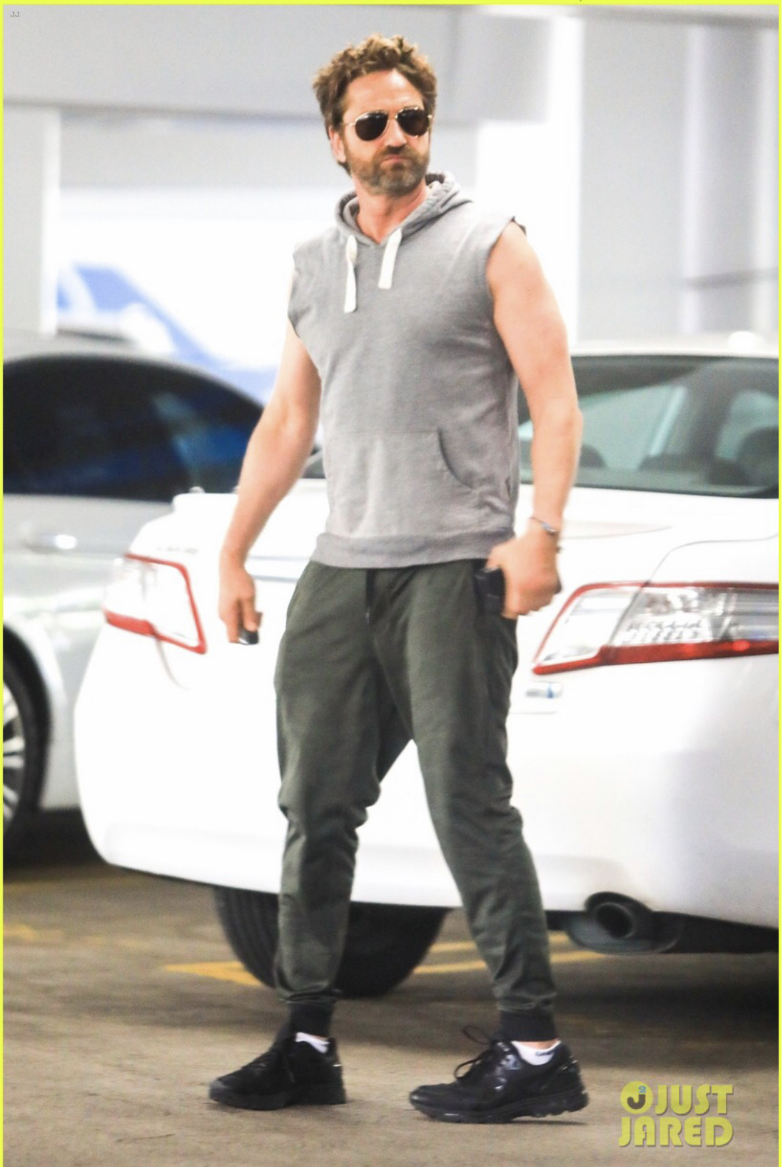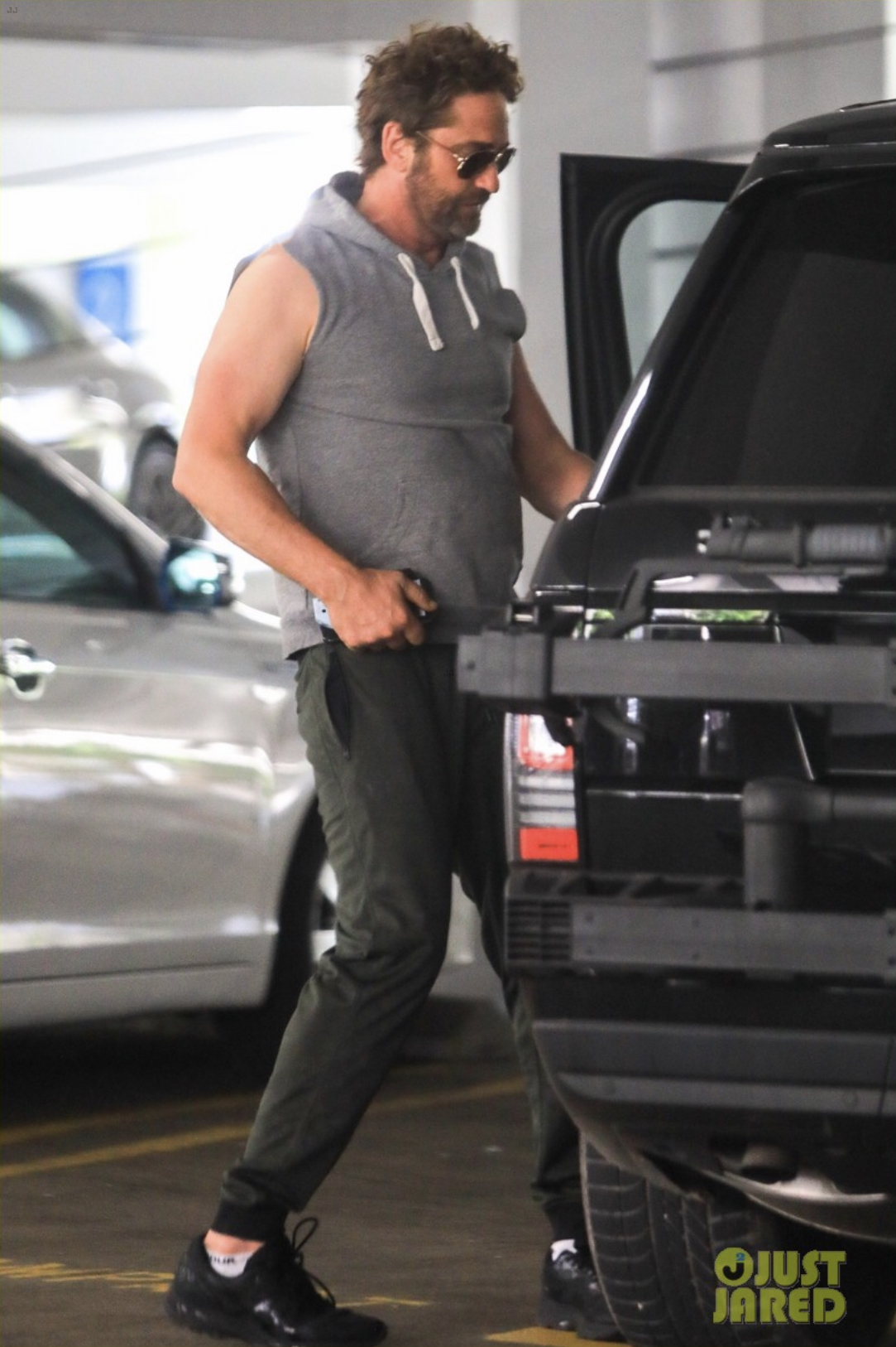Джерард Батлер доставляет подозрительную посылку, снимая сцены для нового фильма «Снежные пони»