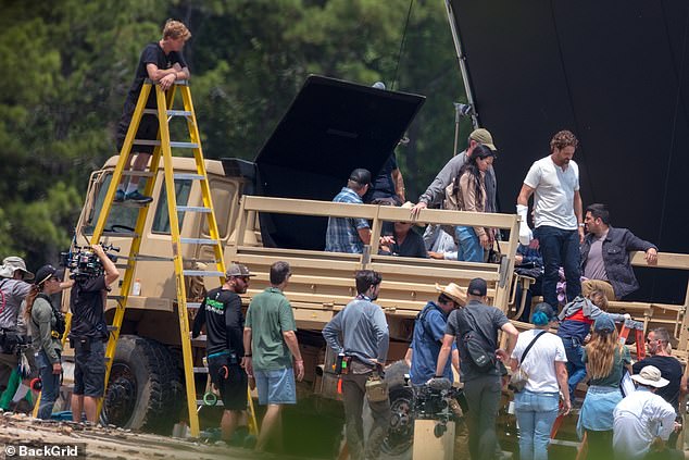 В понедельник (29 июля) актер был замечен в поддельном гипсе на руке во время съемок фильма.