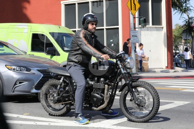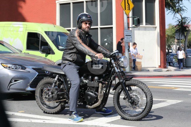 Западный Голливуд, Калифорния - * ЭКСКЛЮЗИВ * Джерард Батлер совершает круиз по Западному Голливуду на своем мотоцикле Triumph. 2 ИЮНЯ 2017