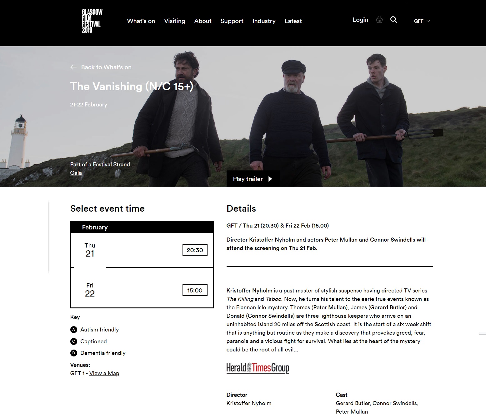 Основываясь на правдивой истории тайны острова Фланнан, Кристофер Нюхольм в захватывающей драмы #TheVanishingв главной роли @GerardButler, Питер Маллан и @ConnorSwindells, получит свою премьеру в Великобритании @glasgowfilmfestна Чт 21 Фев.