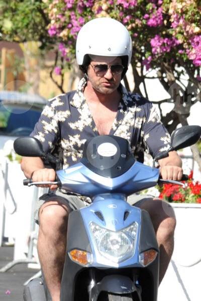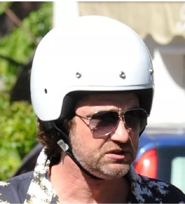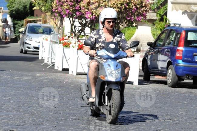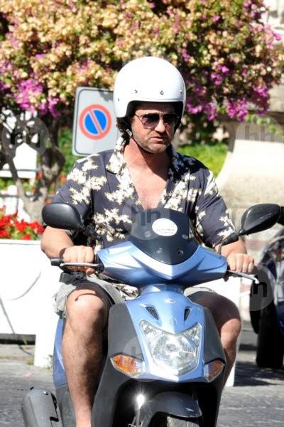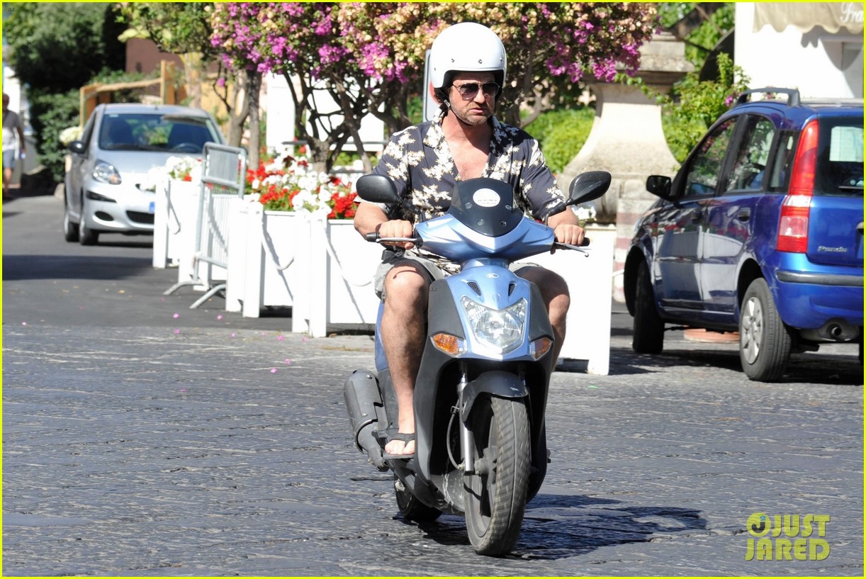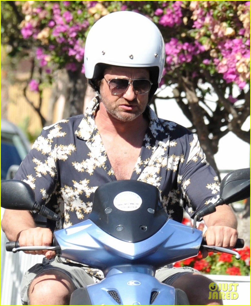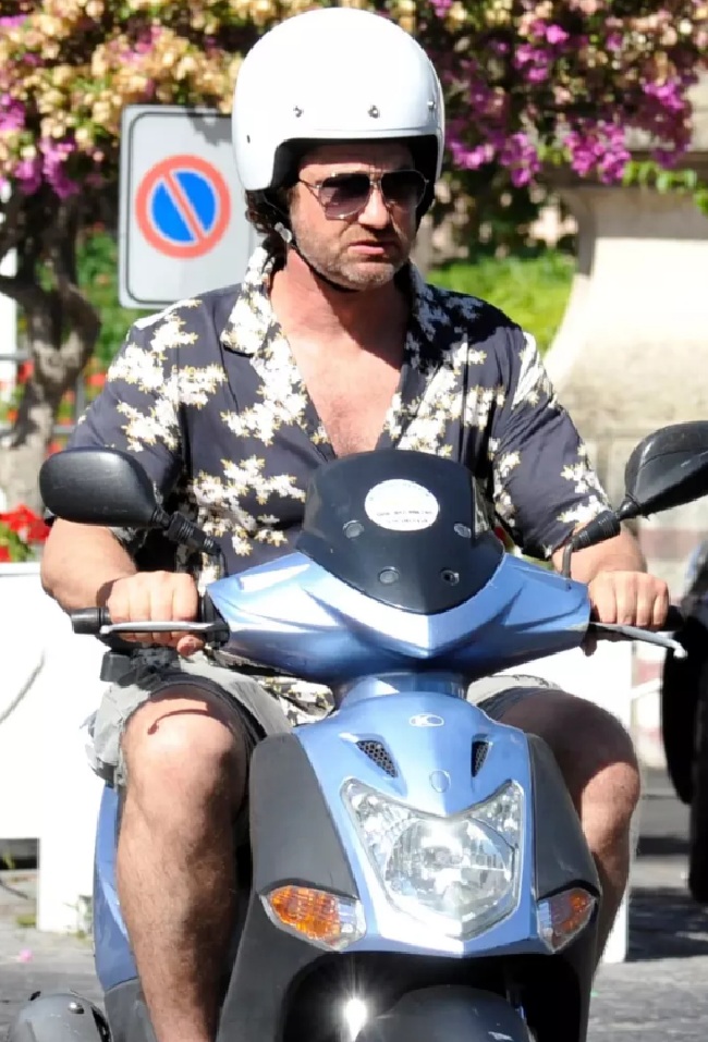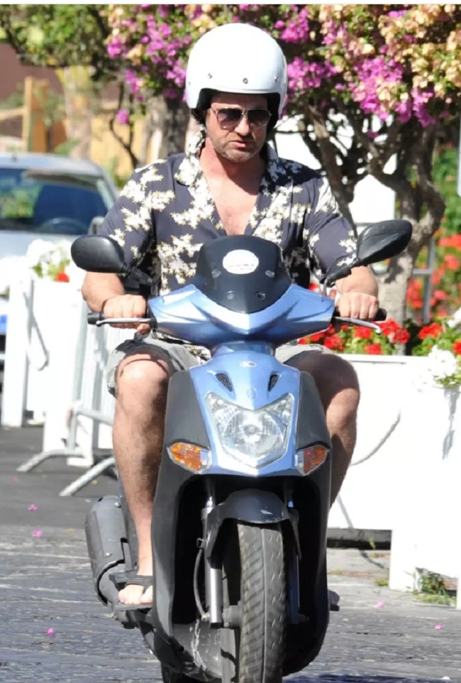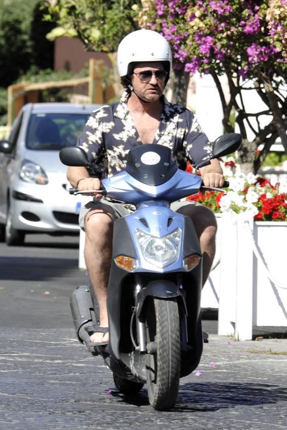 Gerard Butler Suits Up in Ischia, Rides Scooter Around Town