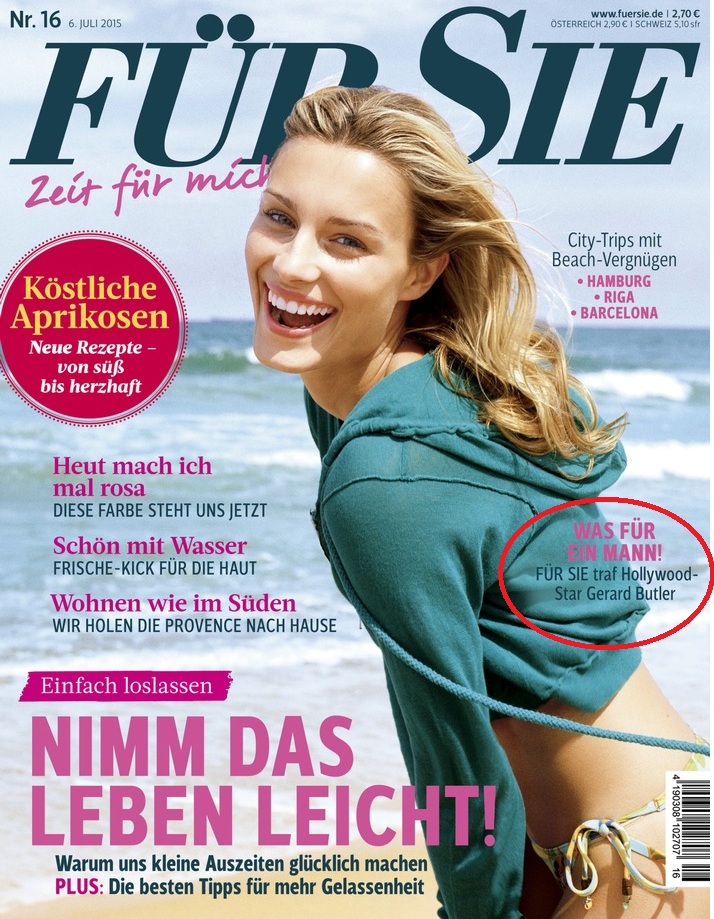 Das ganze Interview mit Gerard Butler lesen Sie in der aktuellen Ausgabe 16/15 der FÜR SIE, die ab dem 6. Juli im Handel erhältlich ist.