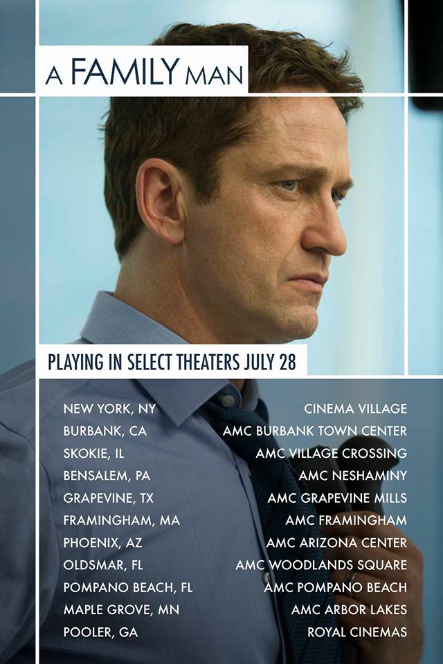 We are excited to be screening at these fine theaters beginning this Friday (July 28th)!! If you don't live near a theater, remember you can catch Gerard Butler in #AFamilyMan on demand now!