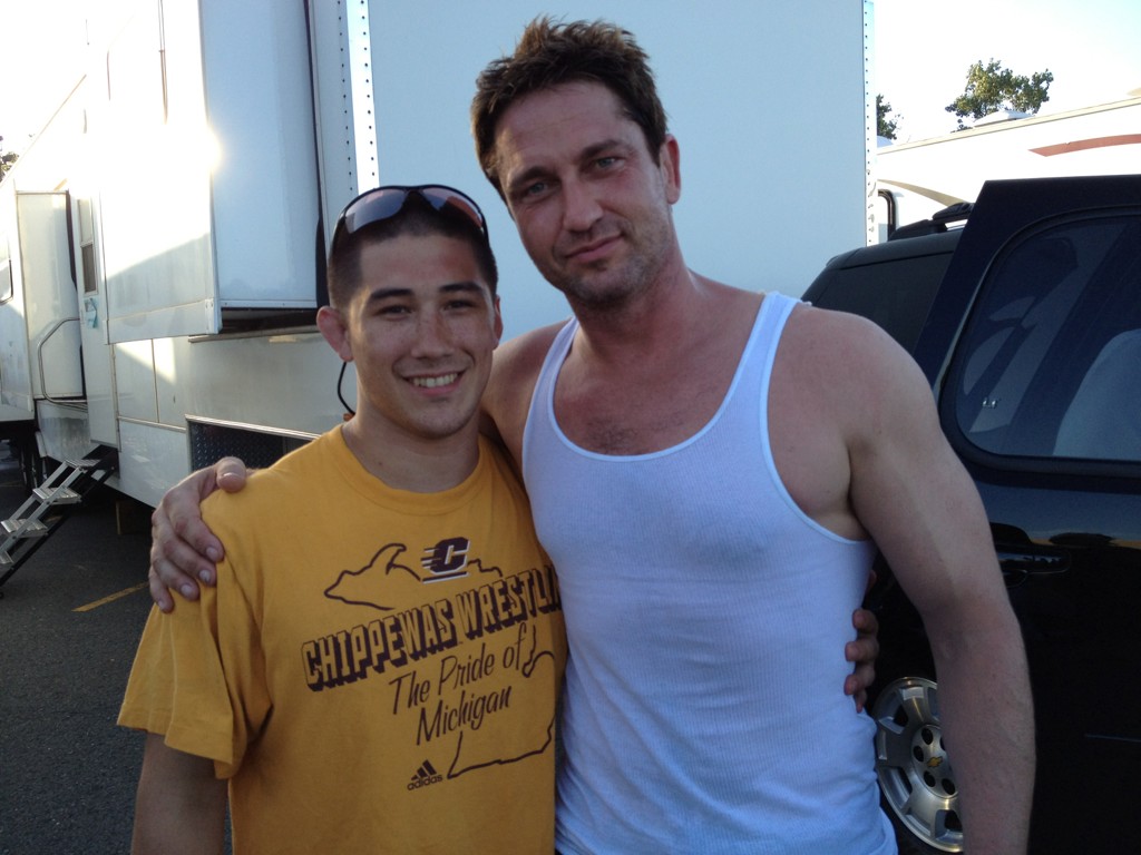 С режиссёром картины Антуаном Фукуа и актёром Арнольдом Чоном («Пираты Карибского моря»). С поклонником.