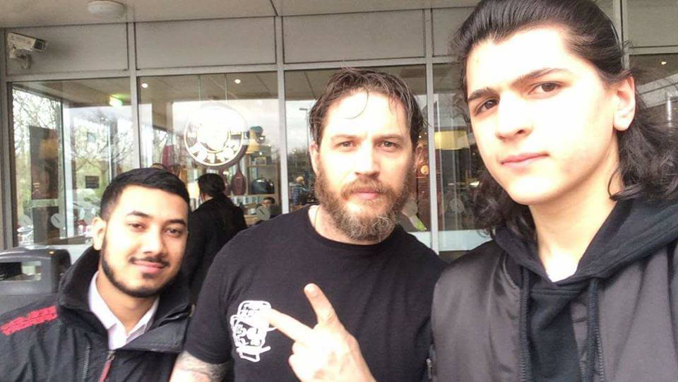 Tom with aspiring actor, John McManus at the Taboo wrap party. John portrayed a Mollie in Taboo, seen in episodes in which James Delaney goes for visits with Godfrey. John's story of opportunity to star in Taboo, was featured in Gay Times UK on March 14, 2017.