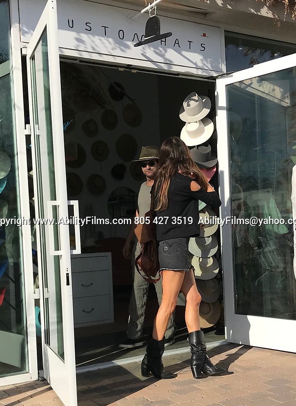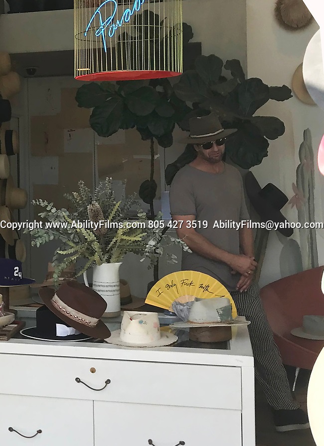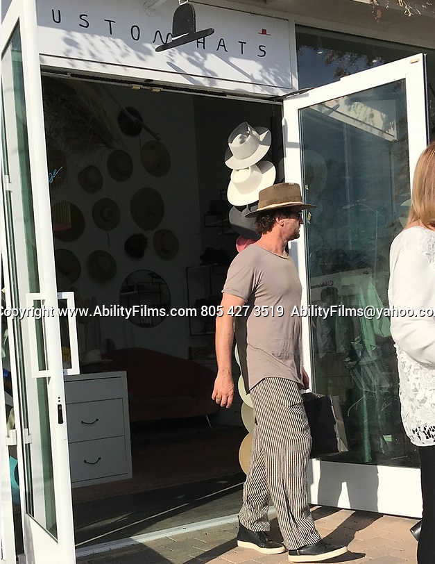 Джерард Батлер покупает шляпы со своей подругой в Малибу, штат Калифорния . Парочка смеялась и, держась за руки, отлично проводила время.