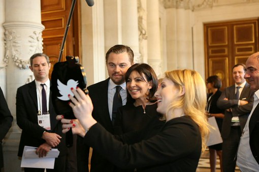 Леонардо с мэром Парижа Анн Идальго на 21-й Всемирной конференции по изменению климата (Париж, 4 декабря 2015).