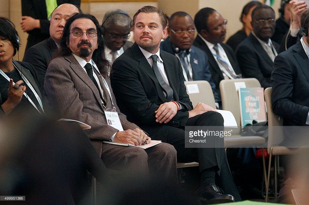 еонардо со своим папой на 21-й Всемирной конференции по изменению климата (Париж, 4 декабря 2015). ДиКаприо-старший тоже является ярым защитником окружающей среды.