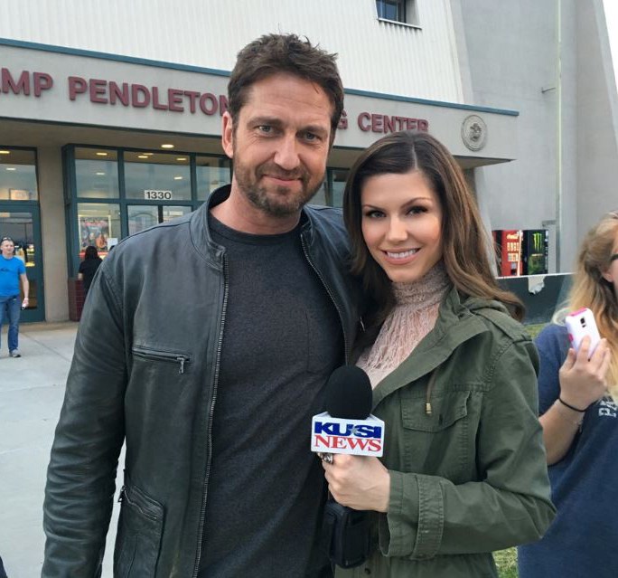 Шотландская Голливудская звезда Джерард Батлер был в Кэмп Пендлтон в пятницу, для продвижения его нового фильма "Падение Лондона."