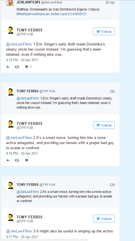 фанатка Лоуренс поделилась инфой, кого будут играть Дж.Айронс и Маття в Красном Воробье