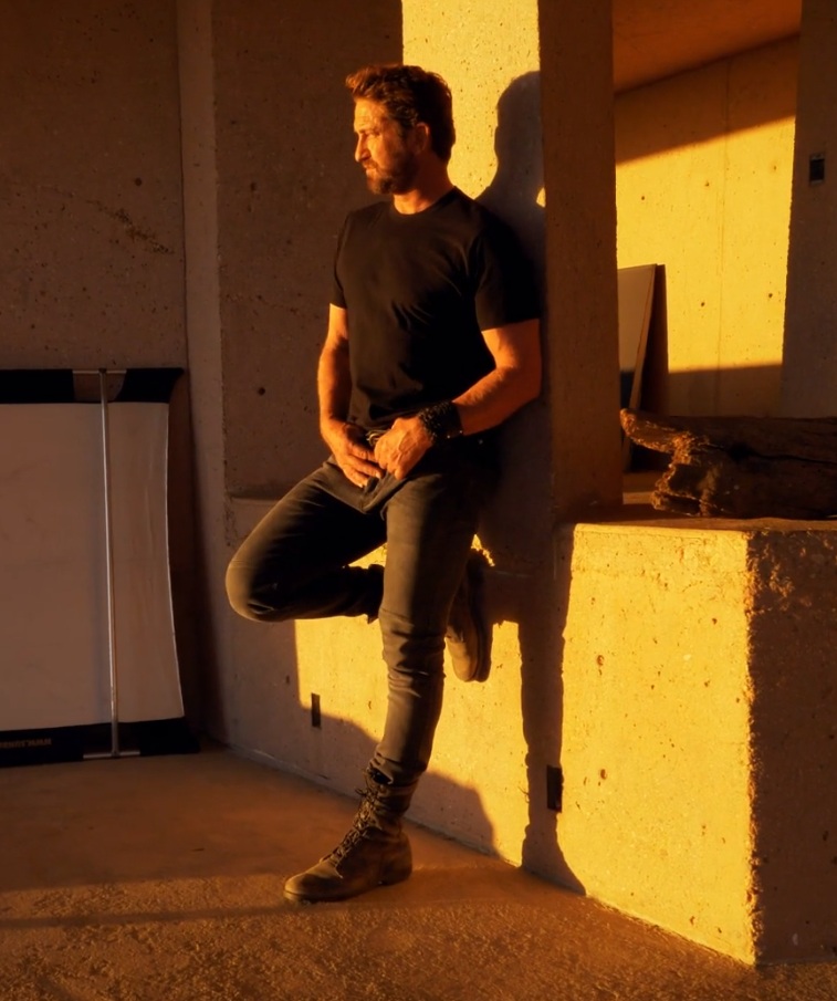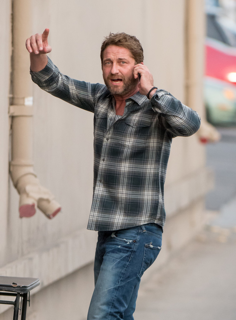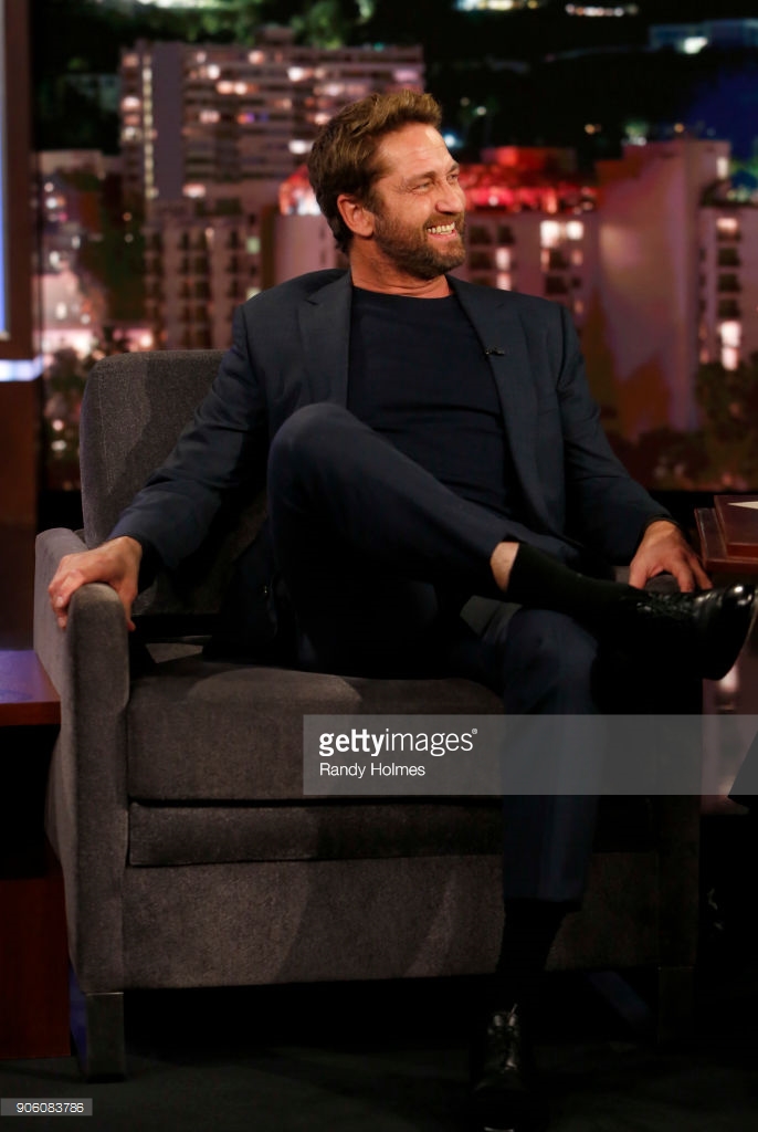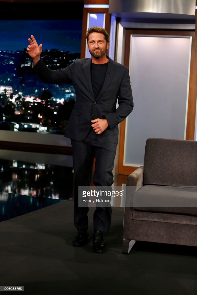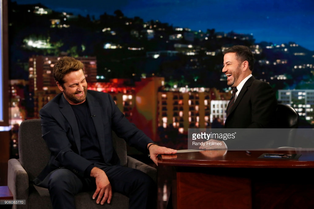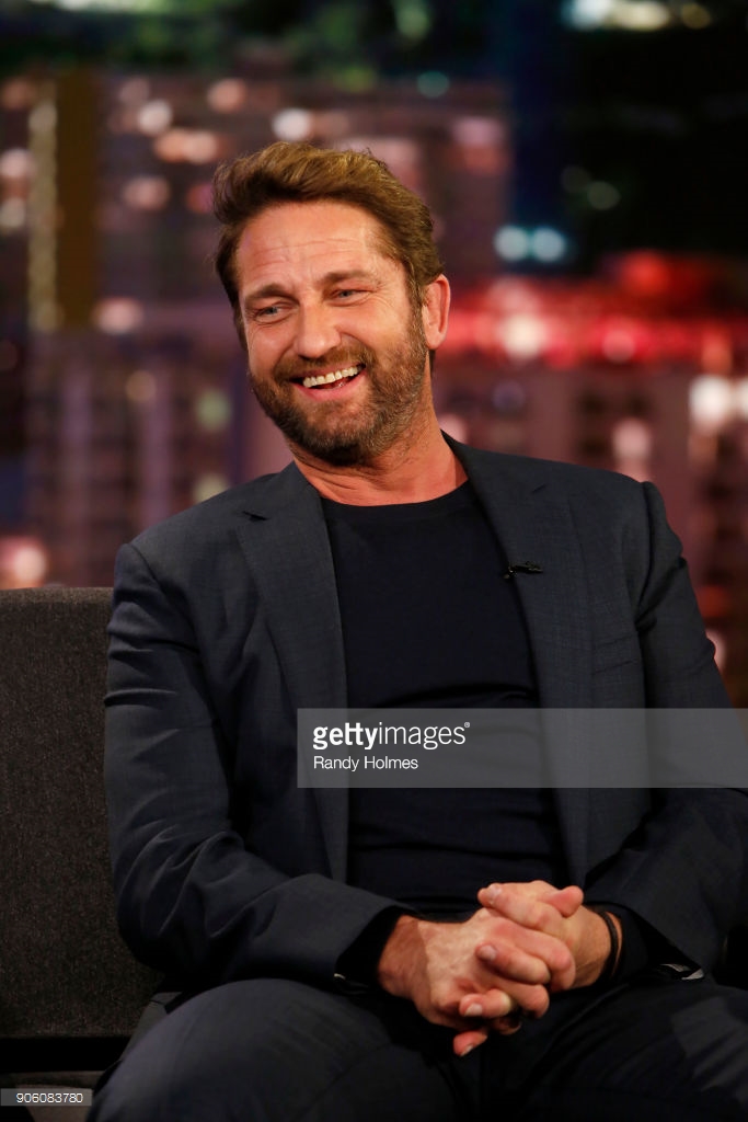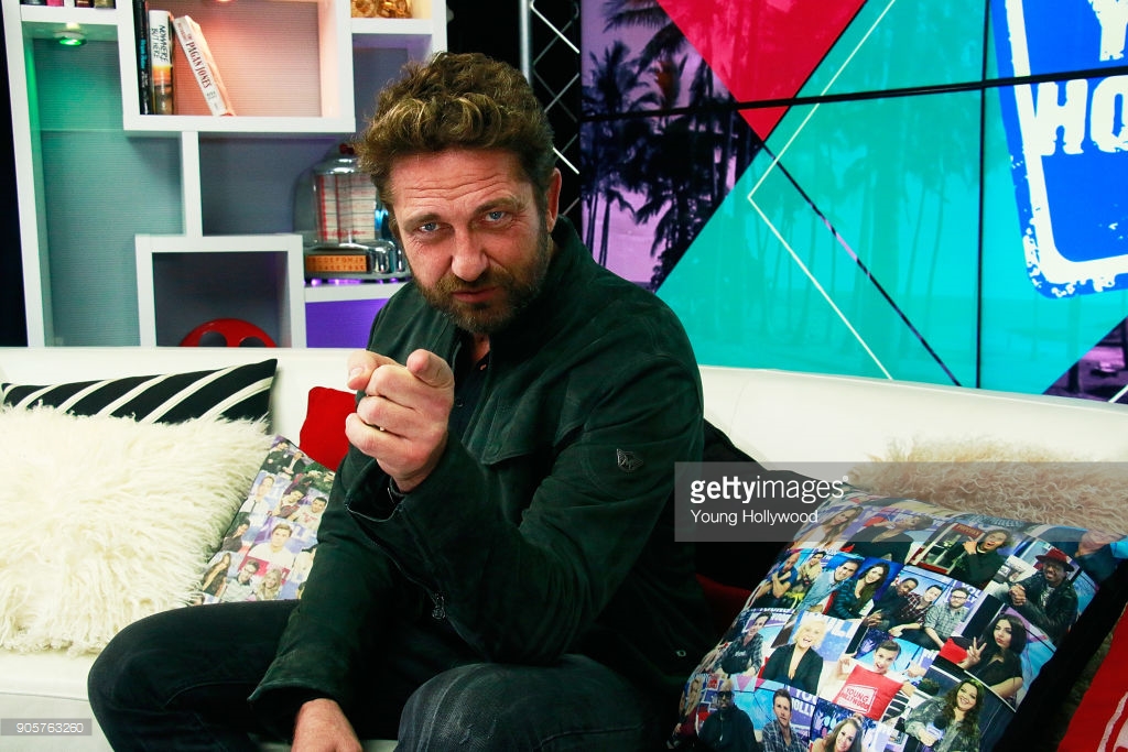 LOS ANGELES, CA - JANUARY 16: (EXCLUSIVE COVERAGE) Gerard Butler visits the Young Hollywood Studio on January 16, 2017 in Los Angeles, California.