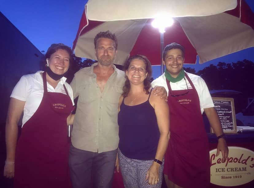 Кинозвезда Джерард Батлер - поклонник мороженого с карамельным кремом от Леопольда! 🌟 Во время перерыва в съемках фильма «Погоня» наша группа получила возможность подать мороженое актерам, в том числе Джерарду Батлеру! »