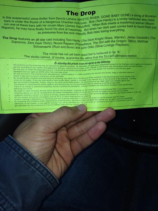 совпадение :) я как раз вспоминала Спасение Животных - один dude :D был на пробном показе Спасения Животных (The Drop) 11 декабря и написал в Фейсбуке: