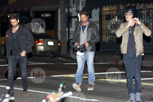 *Эксклюзив* Лос-Анджелес, Калифорния - Голливуд А-Листер Джерард Батлер и его сексуальная брюнетка Морган Браун забрали свой автомобиль с парковки после романтического ужина No Name в L.A. шотландский актер был рад видеть наши камеры и даже помахал рукой, прежде чем отправиться домой