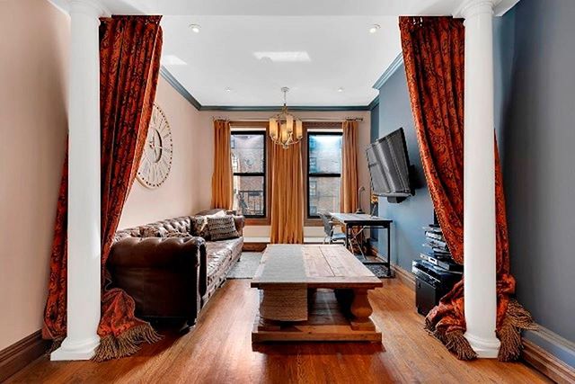All my designs are not over the top Gerard Butler cover of Architectural Digest expensive! Simple and fabulous arch subtly separates room into two areas. Pull curtains closed for privacy. Reverse angle bachelor pad. You deserve to be spoiled. Invest in comfort. Go to http://www.elvisr.com to spoil yourself. Bachelor pad NYC. Design your castle. Why deprive yourself. Такая же кирпичная стена за окном
