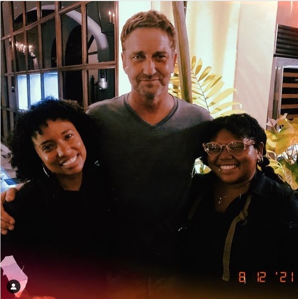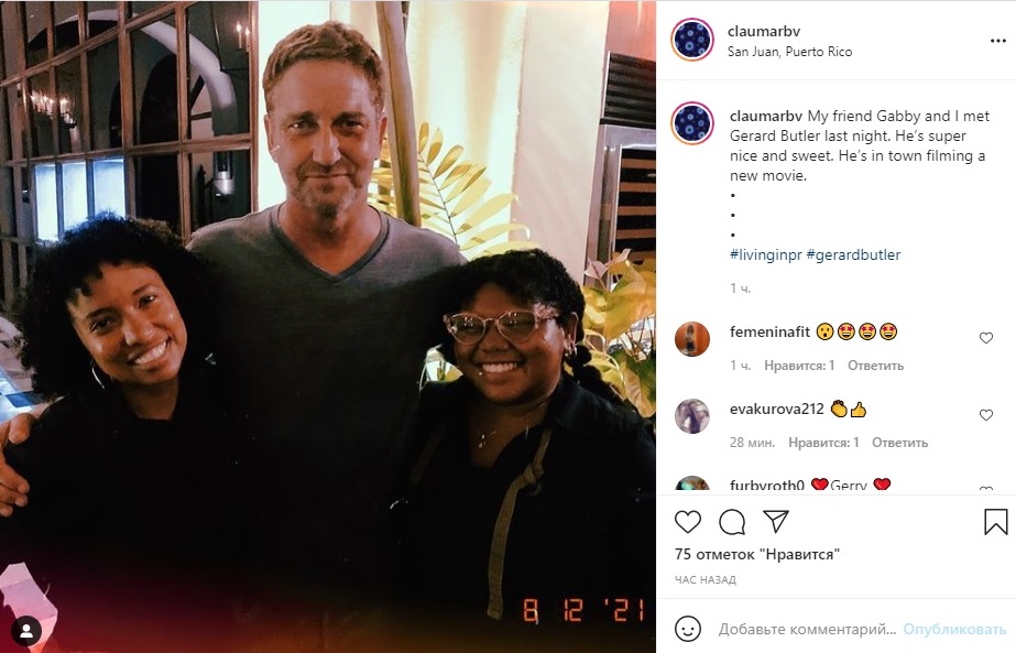 Джерарда Батлера. Он очень красивый и милый. Он в городе, снимает новый фильм.