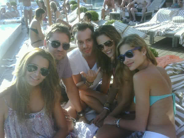 Gerry was spotted by the pool of the Fasano Hotel with models Fernanda Motta, Alessandra Ambrósio, and Ana Beatriz Barros. (The other men is Matheus Mazzafera.)