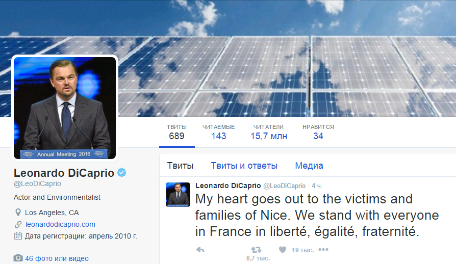 Леонардо ДиКаприо опубликовал пост в Твиттере о теракте в Ницце: