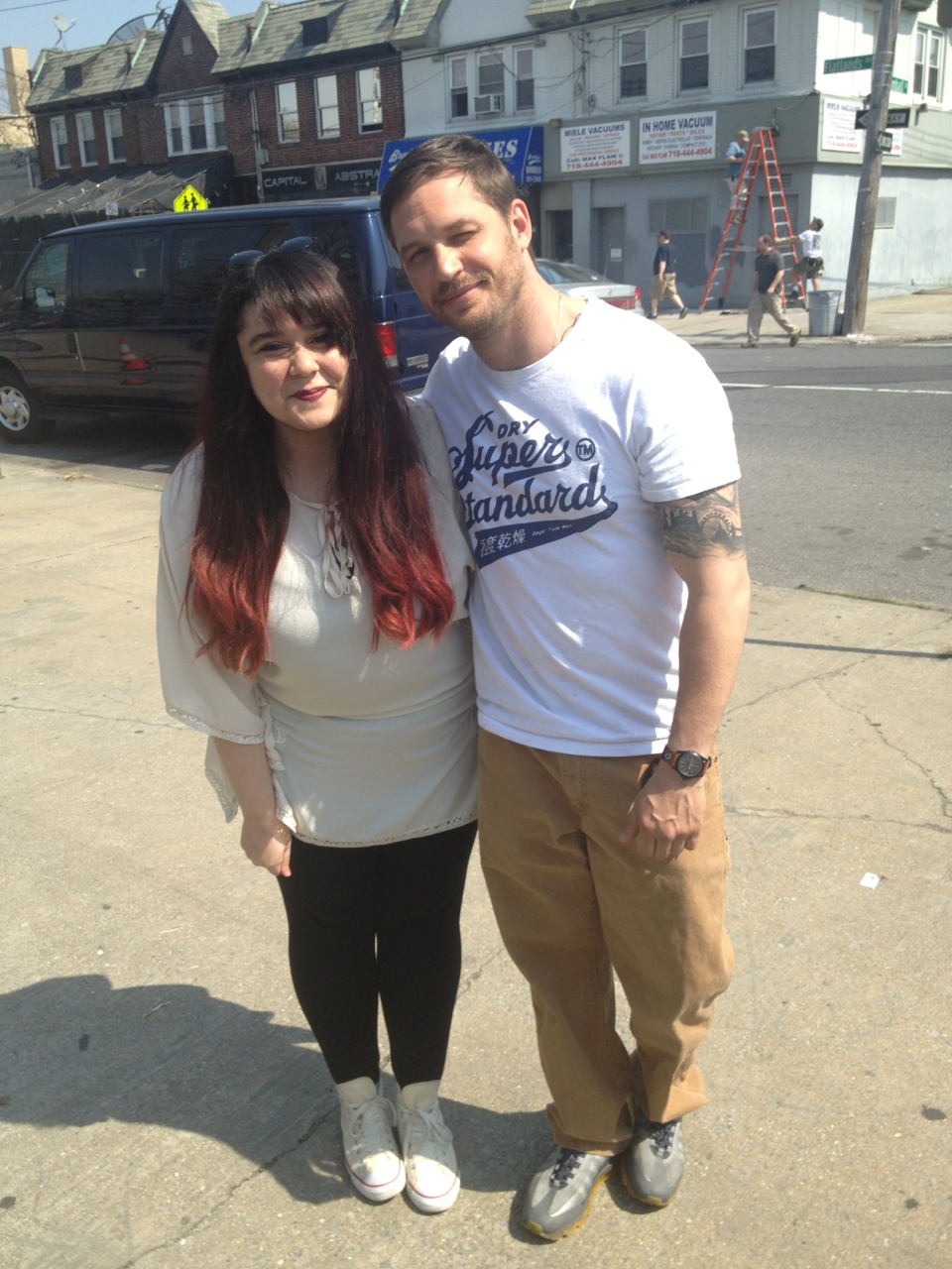 Эта девочка встречается с ним уже второй раз. Ее зовут Лейла и она - настоящая поклонница Тома, живет в Нью-Йорке и ведет, как и мы, отдельную темку Харди на форуме.