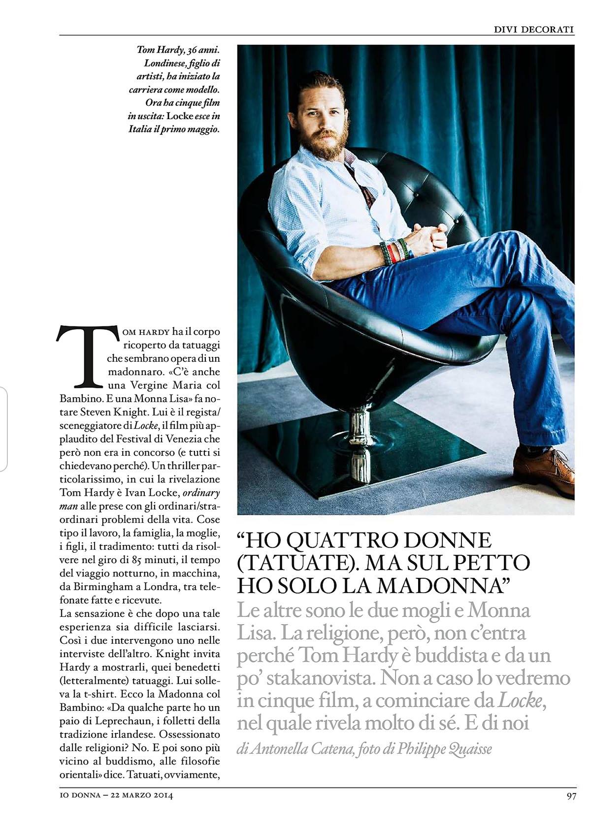 Tom Hardy in this week’s edition of Io Donna