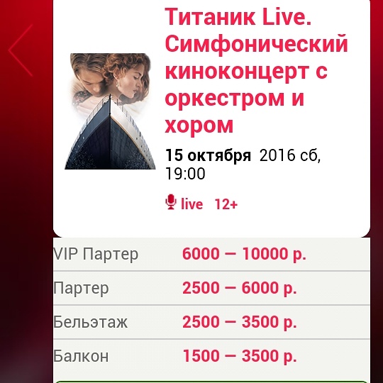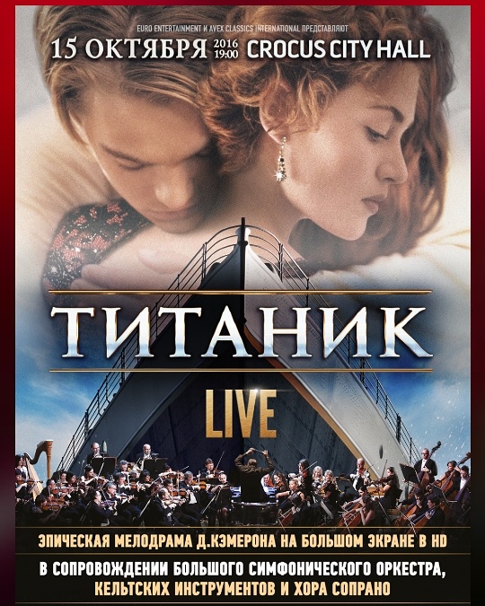 15 октября, завтра, премьера музыкального киноконцерта в сопровождении Большого симфонического оркестра, кельтских инструментов и хора сопрано. "Титаник Live" это показ фильма в сопровождении концертной музыки! Москва, Крокус Сити Холл, 19:00! Также концерт пройдет и в Санкт-Петербурге тоже.
