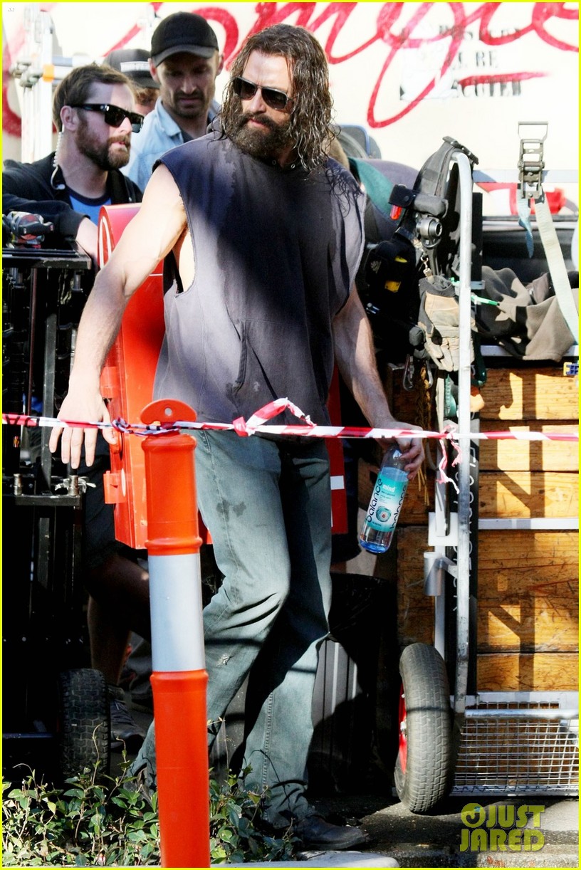 Хью готовится к работе на съемочной площадке его нового фильма Росомаха в понедельник (6 августа) в Сиднее, Австралия.