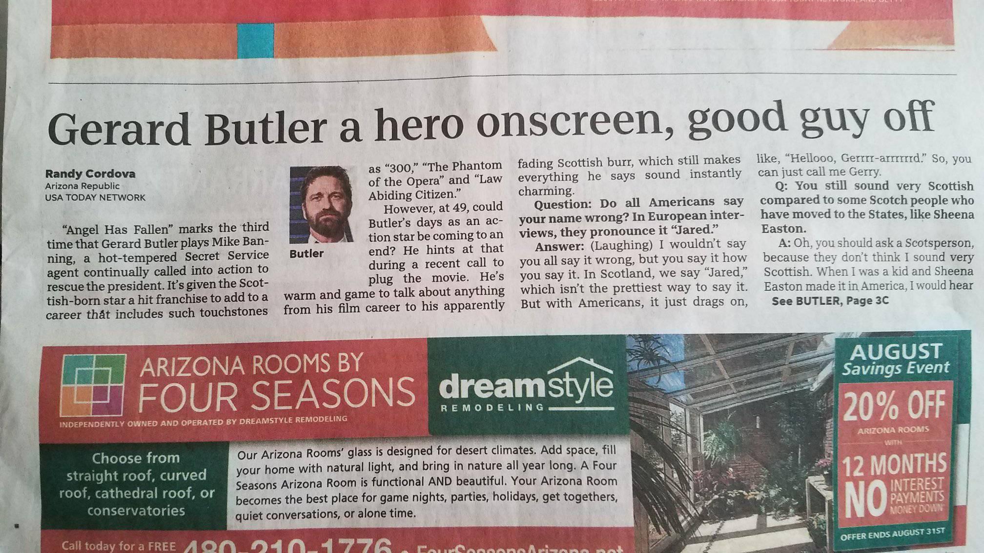 Актёр был очень разочарован, ведь он долго тренировался и репетировал этот эпизод месяцами. В итоге дублёр Батлера сам предложил ему начать разминаться на площадке, чтобы съёмочная группа заметила, что он в состоянии не ошибиться в кадре.