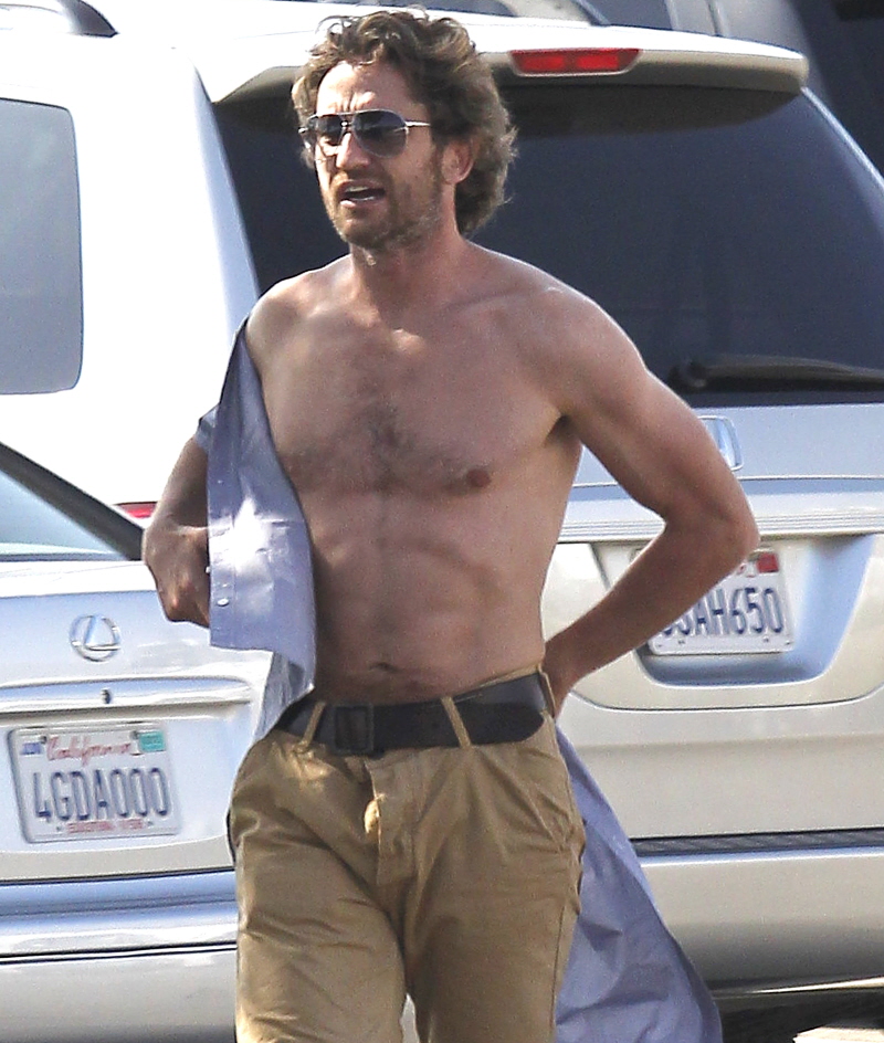 Актер Джерард Батлер наслаждается едой с друзьями в Брентвуде.