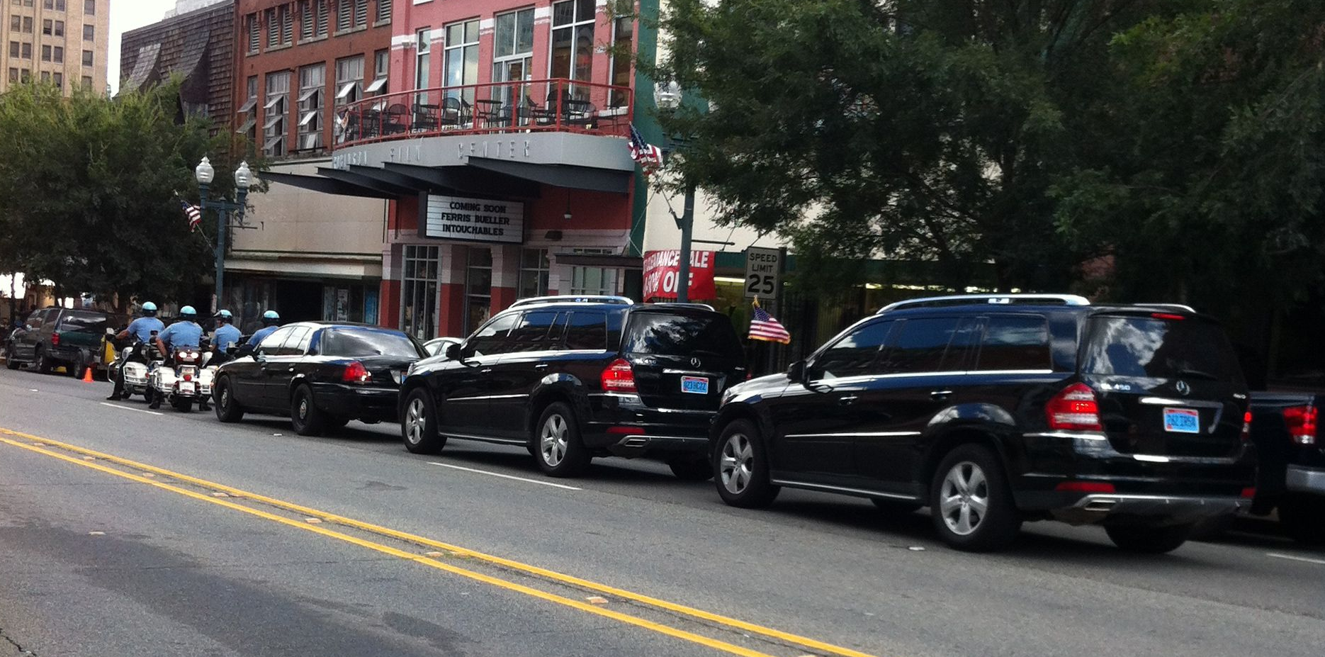 Посмотрите, как выглядит на съёмках кортеж Президента США на улицах Шривпорта.