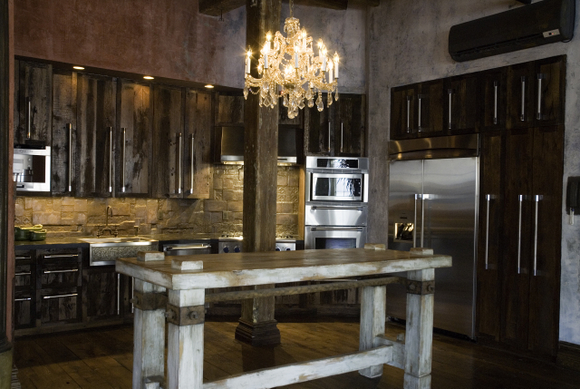 - Каждый предмет подбирался в соответствии с общим стилем, который нравится Джерри. Значительная часть мебели сделана вручную с использованием винтажных тканей. Но часть мебели мы заказывали в калифорнийской фирме Arte de Mexico ( http://www.artedemexico.com/index.html ) . Так, например, сделать огромное, словно вытертое кожаное кресло и диван нас вдохновила фотография Эрнеста Хэмингуэя, где он, сидя в таком же кресле, что-то пишет в своем журнале.