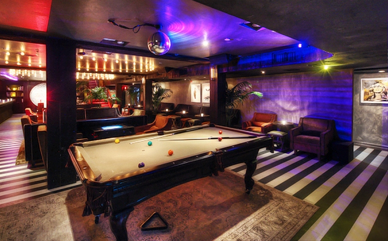 3) Вниз до & вниз имеет атмосферу Soho House, показывая художественные книги и бильярдный стол, который будет перемещен каждую ночь, чтобы создать танцпол. Точное время в пути, неизвестно, но догадка сейчас 2 утра заметку.(С двух ночи начинаются танцы.)