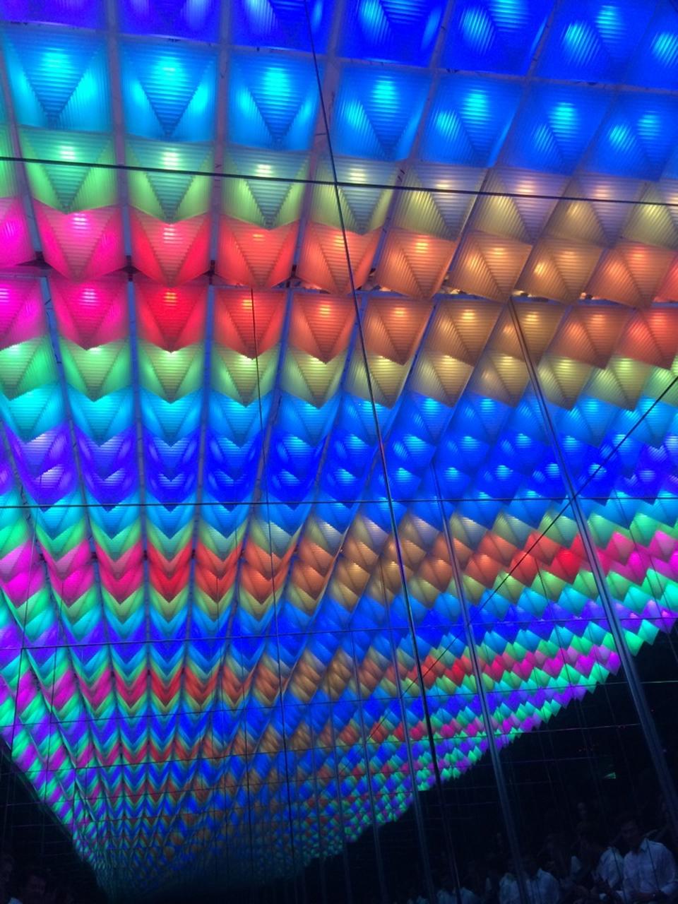 2) Для перемещения Вниз, гости поедут "с помощью лестницы освещенной с тепловой установки, который меняет цвет, мол, на основе температуры тела."
