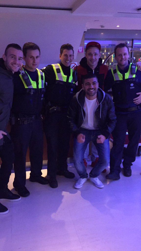 Однако, футболиста, который играет за сборную Бельгии, не слишком расстроил факт, что его приняли за террориста. Один из его друзей твитнул фотку их тусовки и фотку звезды с офицерами полиции.