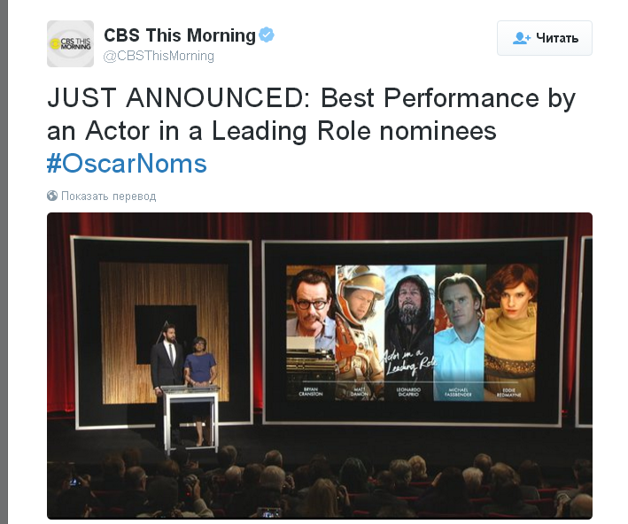 kapelka писал(а):Список номинантов на «Оскар» в этом году выглядит так: