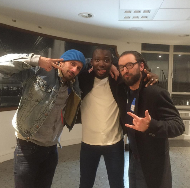 Matthias Schoenaerts + Michaël R. Roskam with Massive Attack in Brussels (16 February 2016).