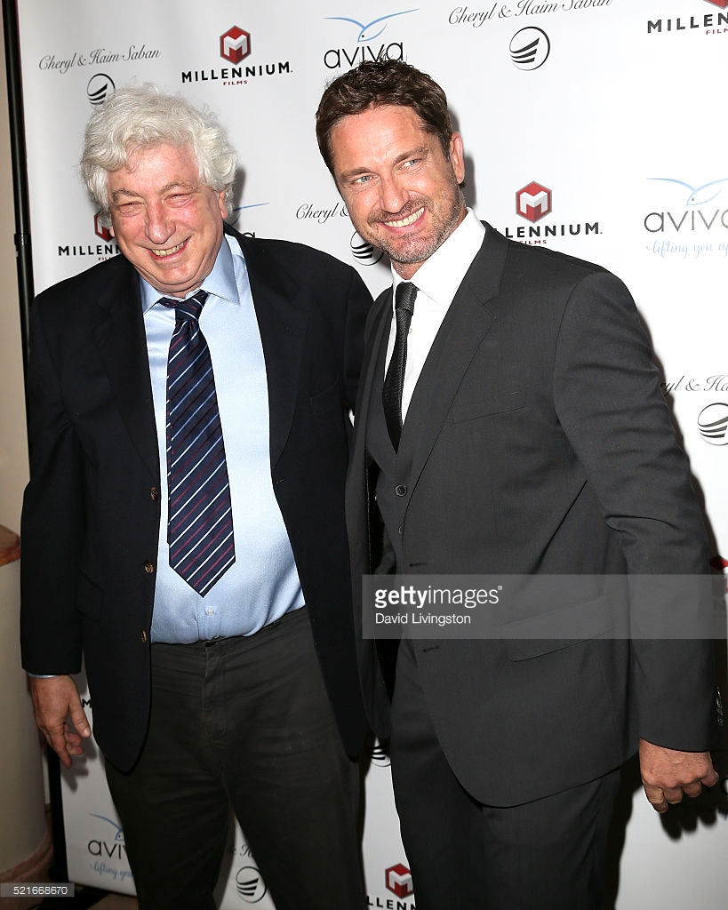 Producer Avi Lerner (L) and actor Gerard Butler attend A Gala to honor Avi Lerner and Millennium Films at The Beverly Hills Hotel on April 16, 2016 in Beverly Hills, California.