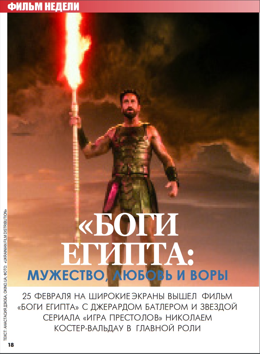 напечатана статья про Джерра к выходу "Богов Египта". (1 и 2 стр. нет )