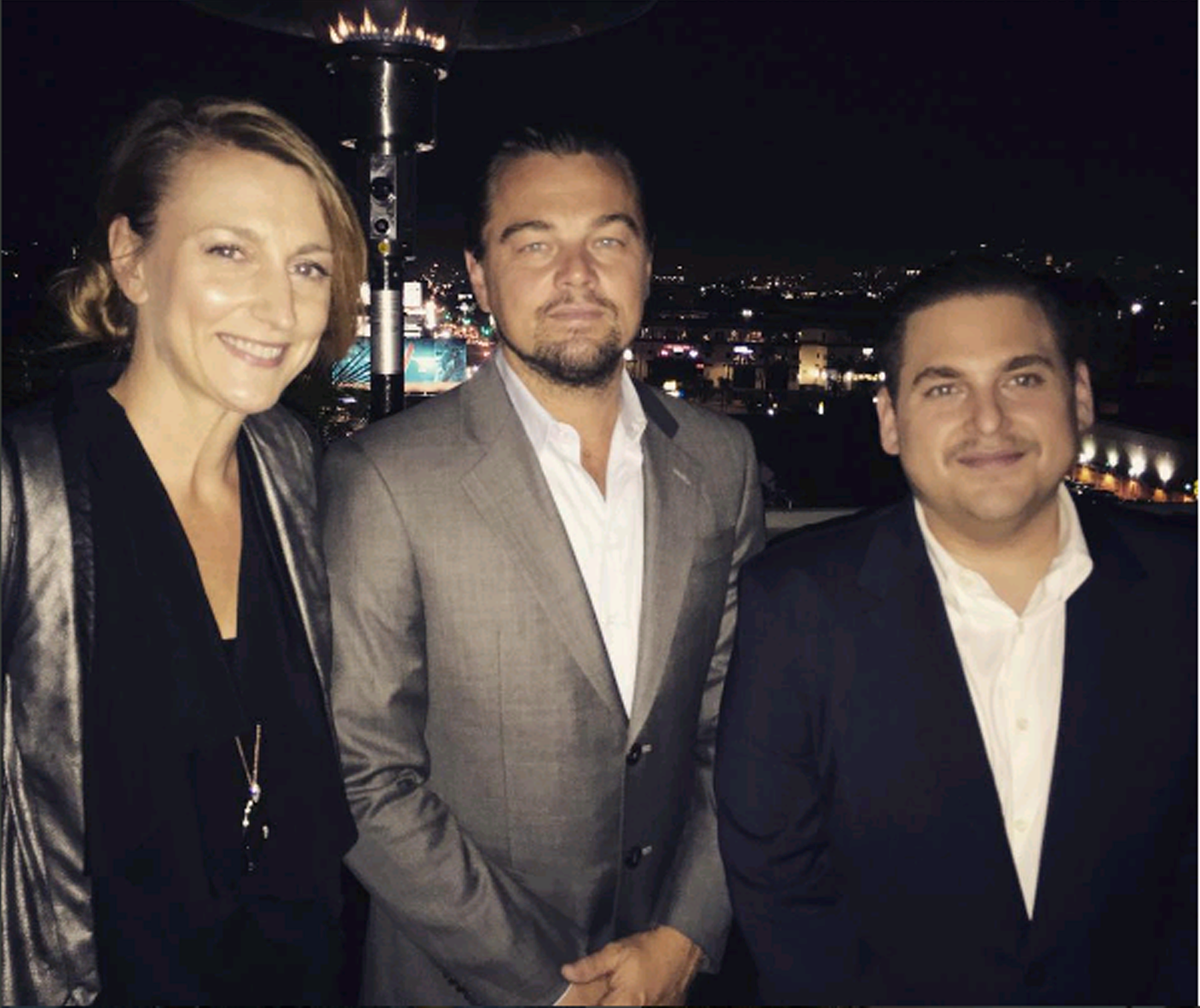 Репортер Kjersti Flaa опубликовала фото с Лео и Джонной Хиллом (другом Лео) (14 ноября 2016). Отель Chateau Marmont Hotel, (Лос-Анджелес)
