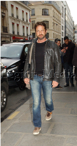 Caption: EXCLUSIVE Gerard Butler leaves the Bristol Hotel in Paris