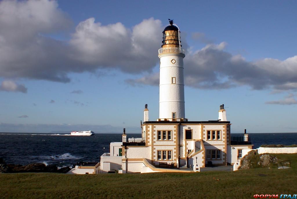 Это самая южная точка Шотландии. Ширина мыса около полукилометра. Справа и слева Ирландское море. На самом кончике мыса, на скалистом утесе высотой метров 70, стоит замечательный маяк (lighthouse).