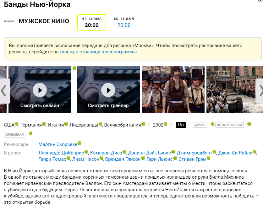 Смотрим Банды Нью-Йорка 16 июля, в 20:00 по МСК.